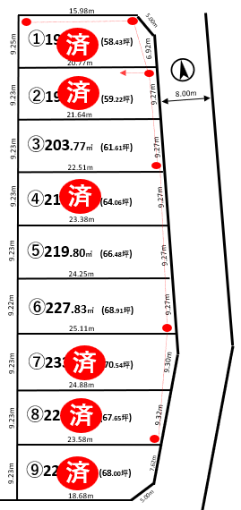 | 区画 | 面積(㎡) | 坪 | 坪単価 | 合計(万円) | 上下水道負担金 | 水道加入金 | |
